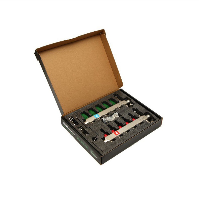 Каждая коллекторная группа состоит из подающего и обратного коллекторов из нержавеющей стали SS304 и фитингов из латуни CW617N.