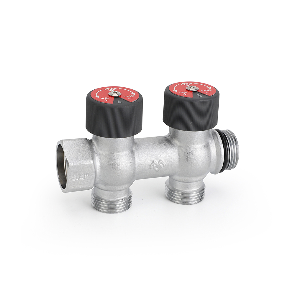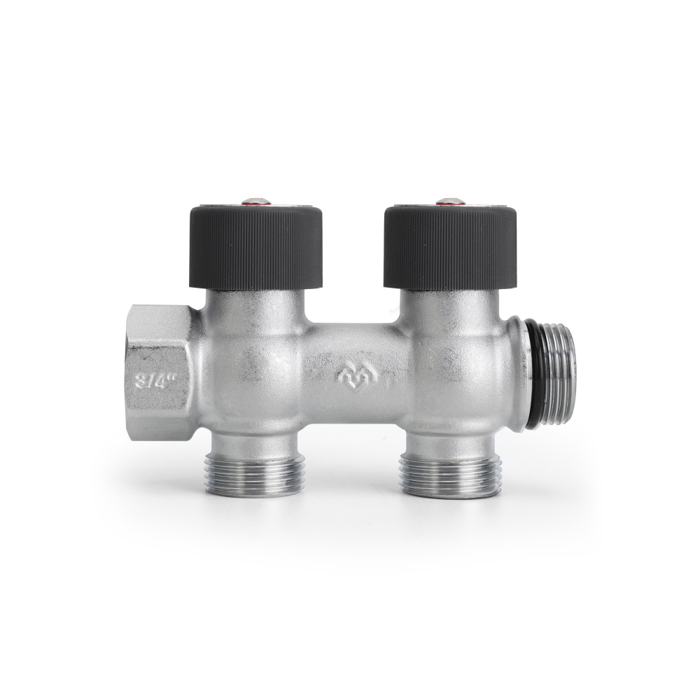 Распределительные коллекторы поставляются с размером основной магистрали 3/4″ или 1″ и могут иметь два, три или четыре выхода с наружной резьбой 3/4″EK.