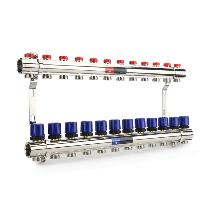 Коллекторная группа для отопления Varmega, ВР 1″, на 12 контуров 3/4″ EK, латунь (VM15812)