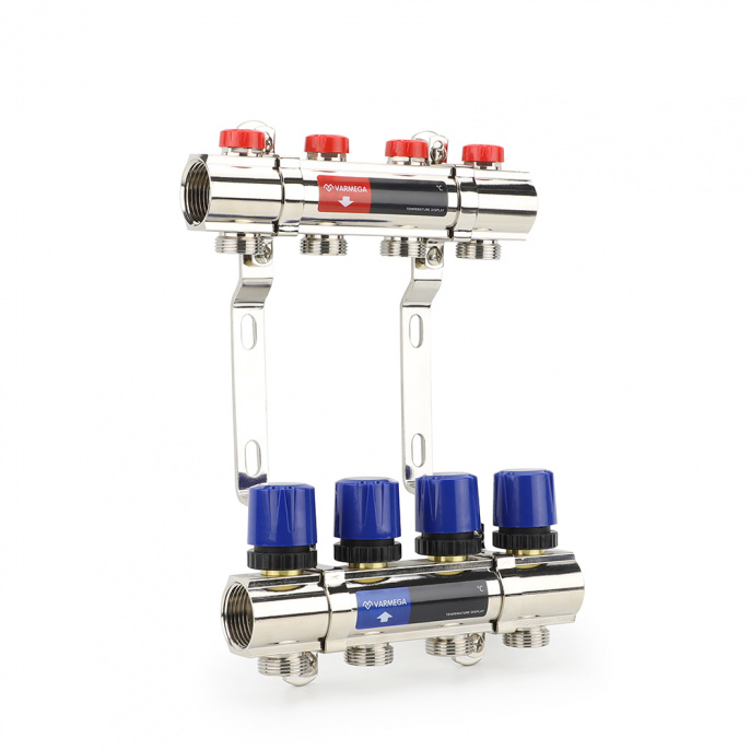 Коллекторная группа для отопления Varmega, ВР 1″, на 4 контура 3/4″ EK, латунь (VM15804)
