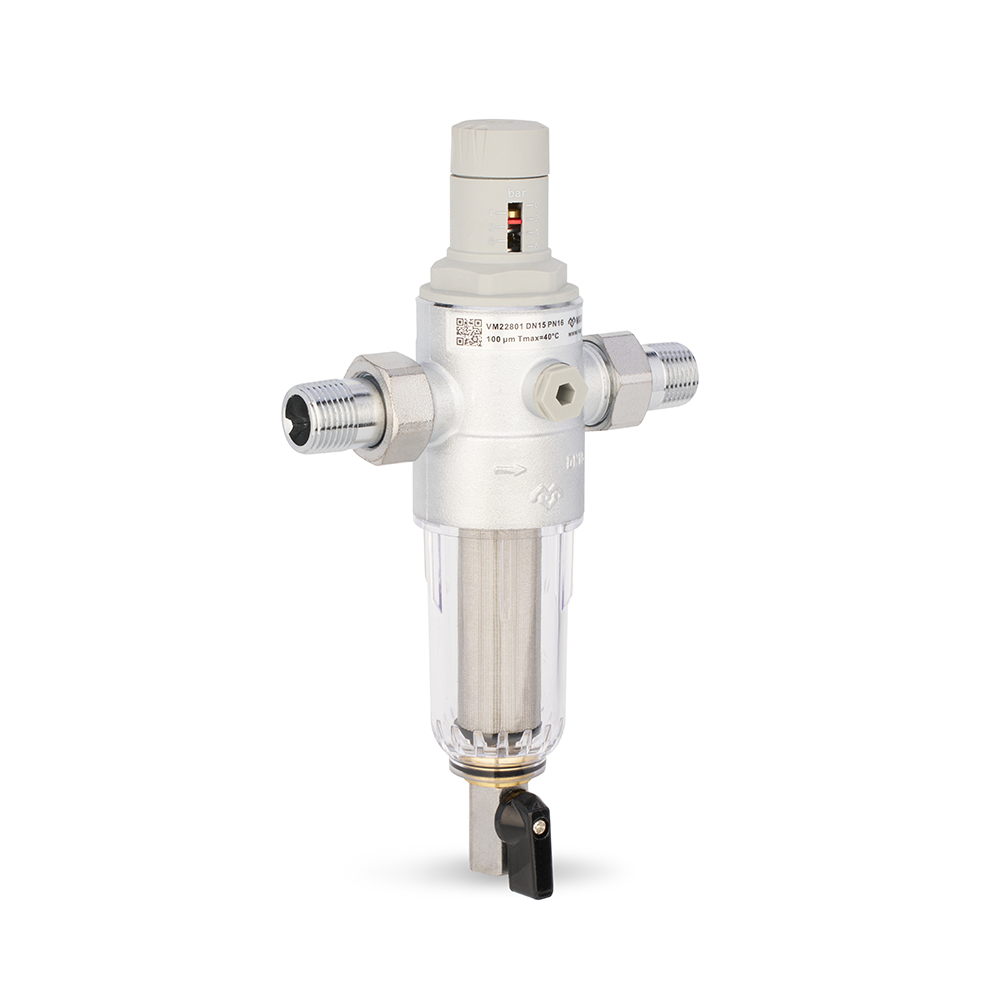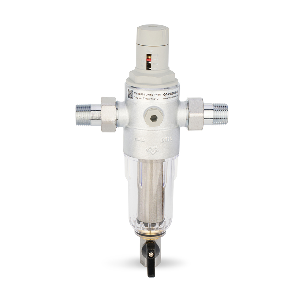 Комбинированный промывной фильтр Varmega, 1/2″ НР, для холодной воды, с редуктором давления (VM22801)