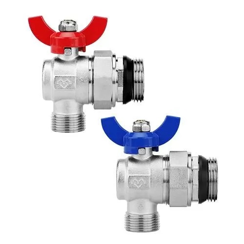 Комплект угловых шаровых кранов Varmega, 1″ x 1″ НР-НР, с разъемным соединением, ручка-бабочка, для коллекторных групп