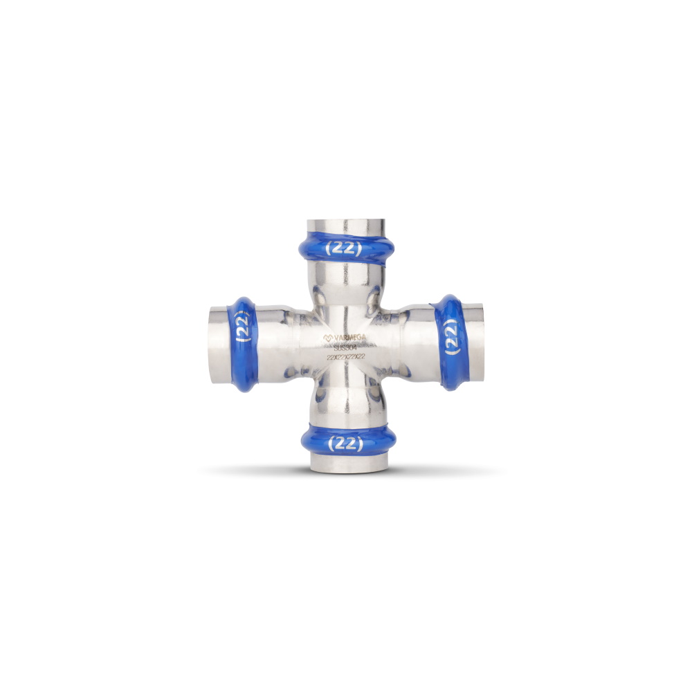 Крестовина раструбная Varmega Inox Press равносторонняя, используется для соединения труб равных диаметров. Для получения надежного неразъемного соединения трубы и фитинга потребуется специальный пресс-инструмент с насадками типа профиль «V».