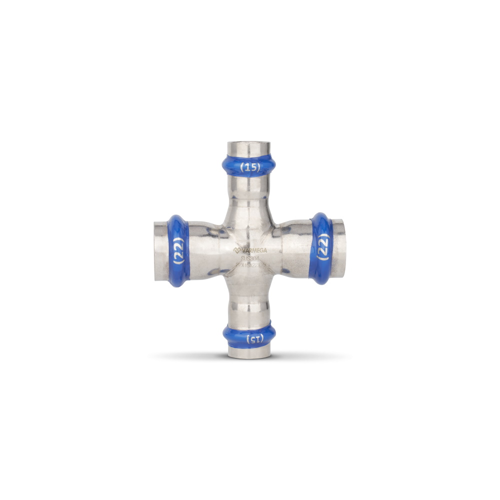Крестовина раструбная Varmega Inox Press переходная, 28 × 22 × 28 × 22 мм