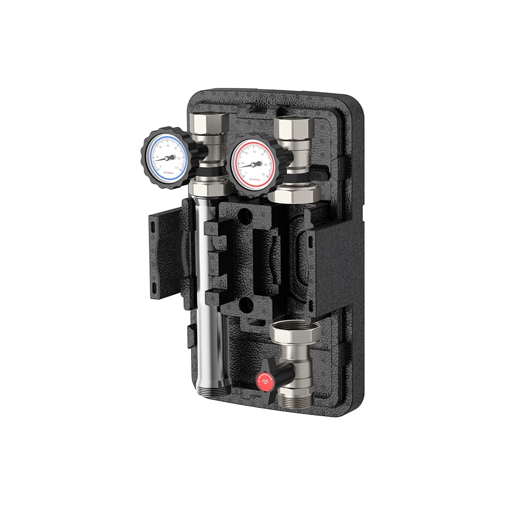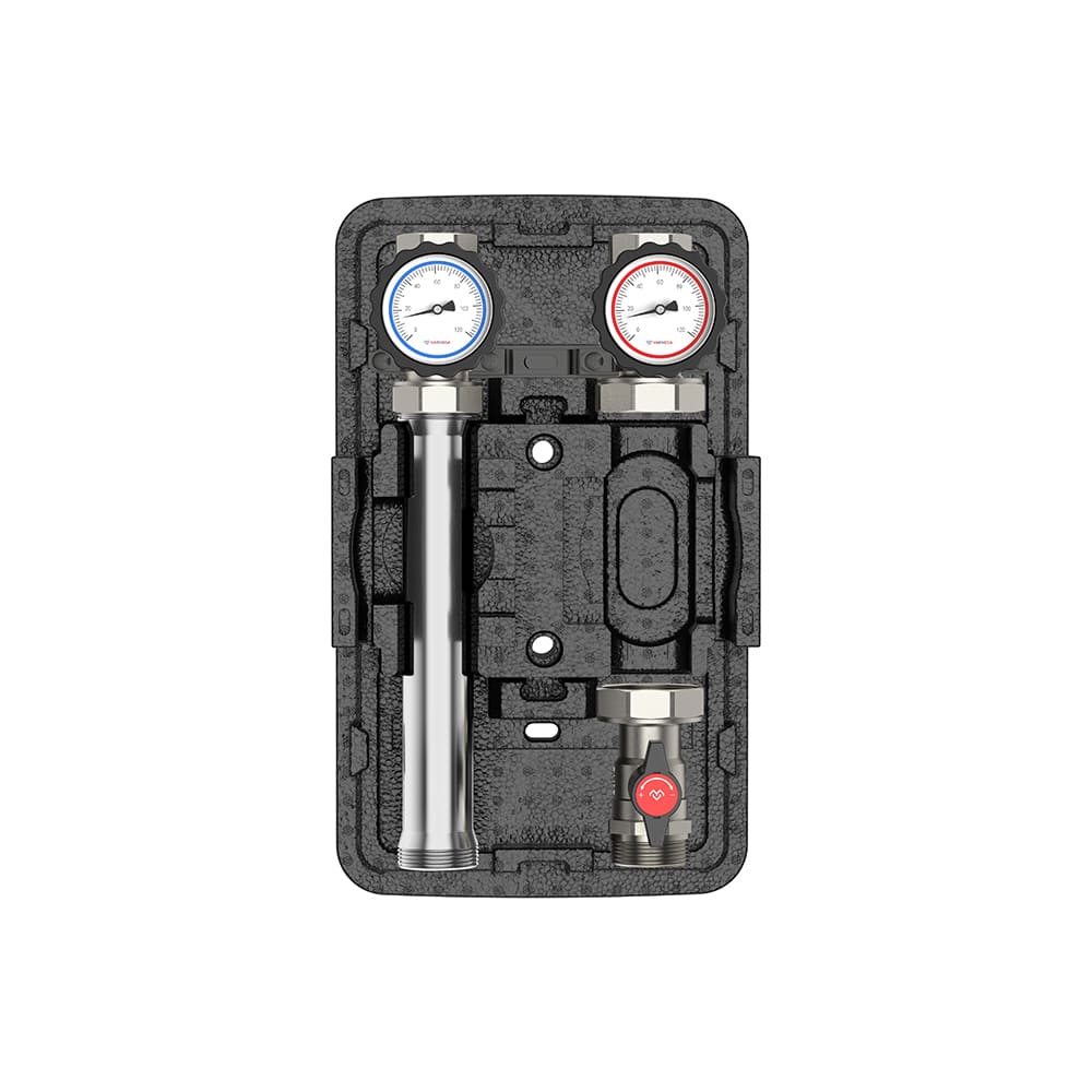 Термоизоляция насосных групп является многокомпонентной и состоит из прочных изоляционных кожухов с фиксирующими элементами, что минимизирует потери тепла и одновременно не дает перегреваться электронике (например, в насосе). При установке на распределительный коллектор отопления Varmega теплоизоляция насосной группы может быть легко снята и вновь установлена.