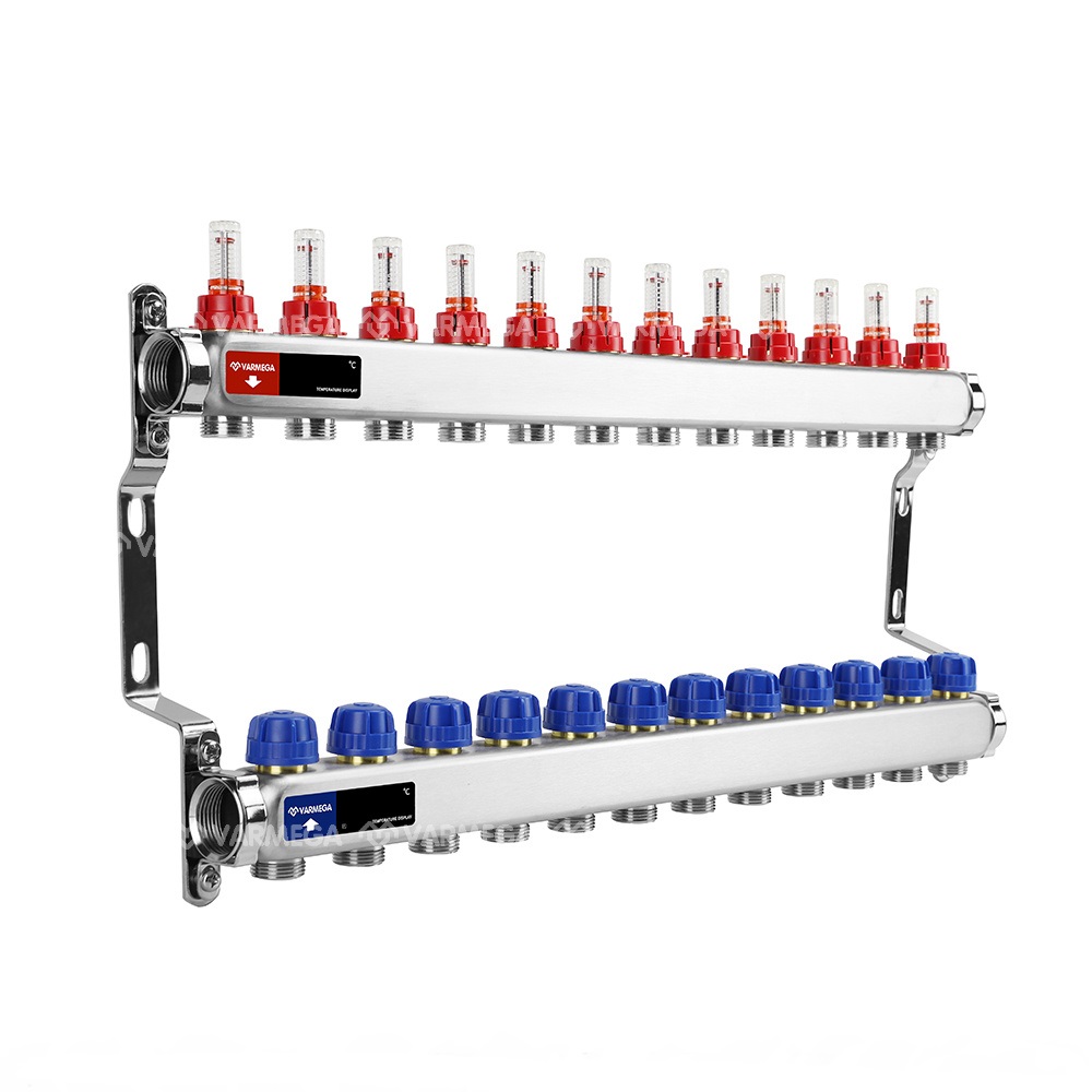 Коллекторные группы предварительной сборки из нержавеющей стали с расходомерами марки Varmega предназначены для распределения и регулирования потоков теплоносителя в низкотемпературных системах отопления (напольное отопление). Оснащены расходомерами на подающем коллекторе и термостатическими вентилями с размером M30x1,5 (с возможностью установки термоэлектрических приводов) на обратном коллекторе. Каждый коллектор подвергается в заводских условиях проверке на функционирование и герметичность уплотнений.