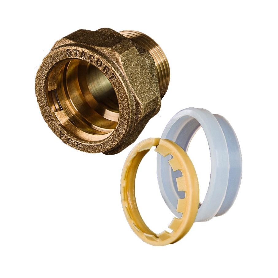 SF 25-3/4 марки Stacort – это cоединительная муфта переходного типа с уменьшением наружной резьбы до трех четвертей дюйма. Основной объект использования – гибкий нержавеющий трубопровод с внутренним диаметром 25 мм., который (или к которому) подключаются прямые участки трубопроводов, изготовленных из альтернативных материалов или сантехнические, отопительные, насосные и иные промышленные приборы с помощью наружной резьбы.