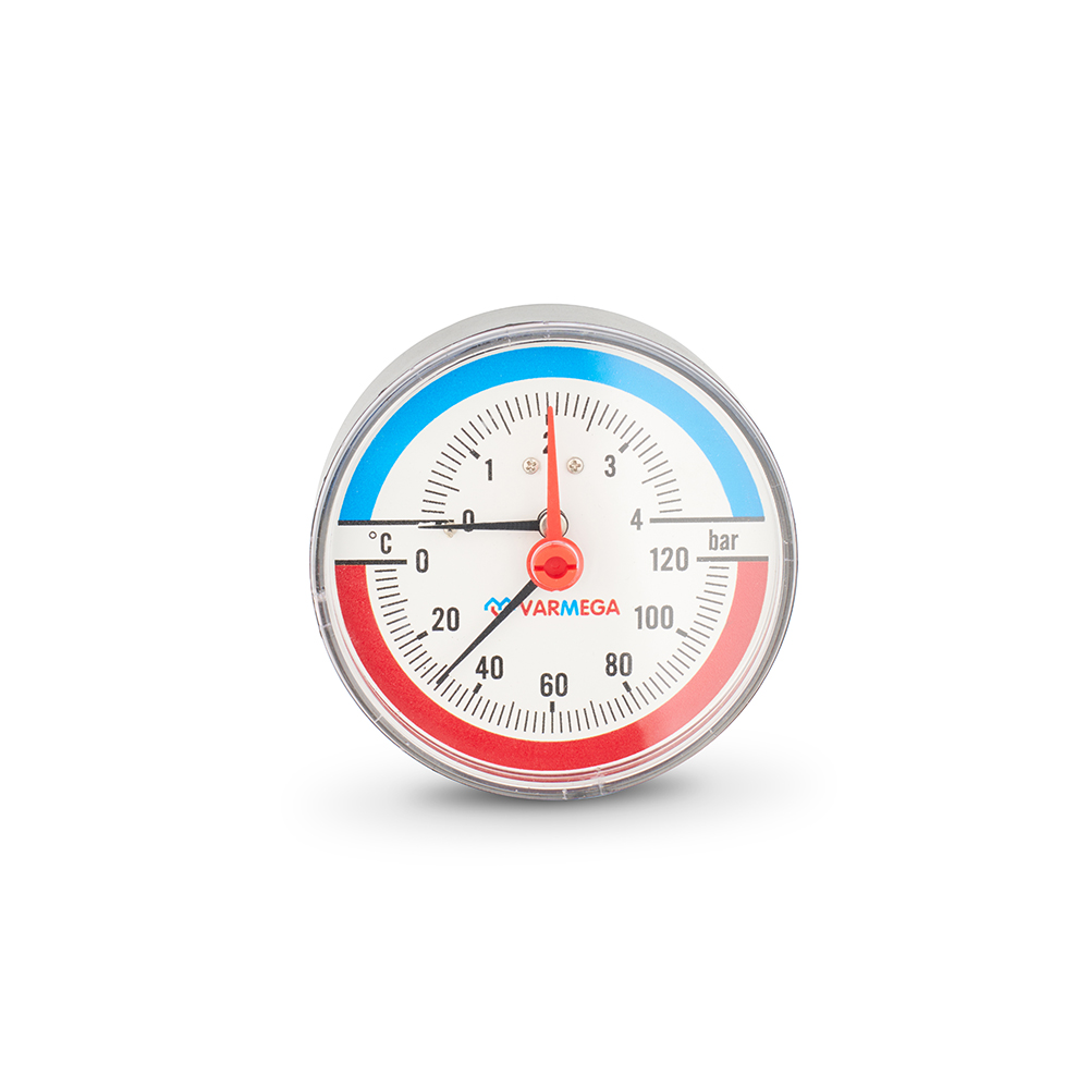Термоманометры Varmega являются аналоговыми измерительными приборами, которые предназначены для показа текущего давления и температуры в бытовых гидравлических системах (отопление и водоснабжение).