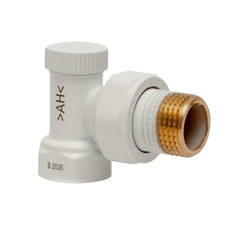 Запорный радиаторный клапан Arrowhead White, угловой, Ду15, белый цвет