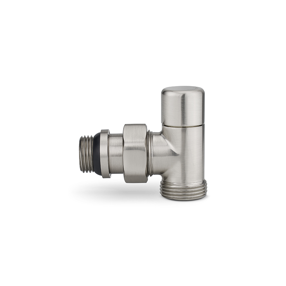 Запорный радиаторный клапан Varmega, 1/2″ x 3/4″ EK НР, угловой, матовый никель